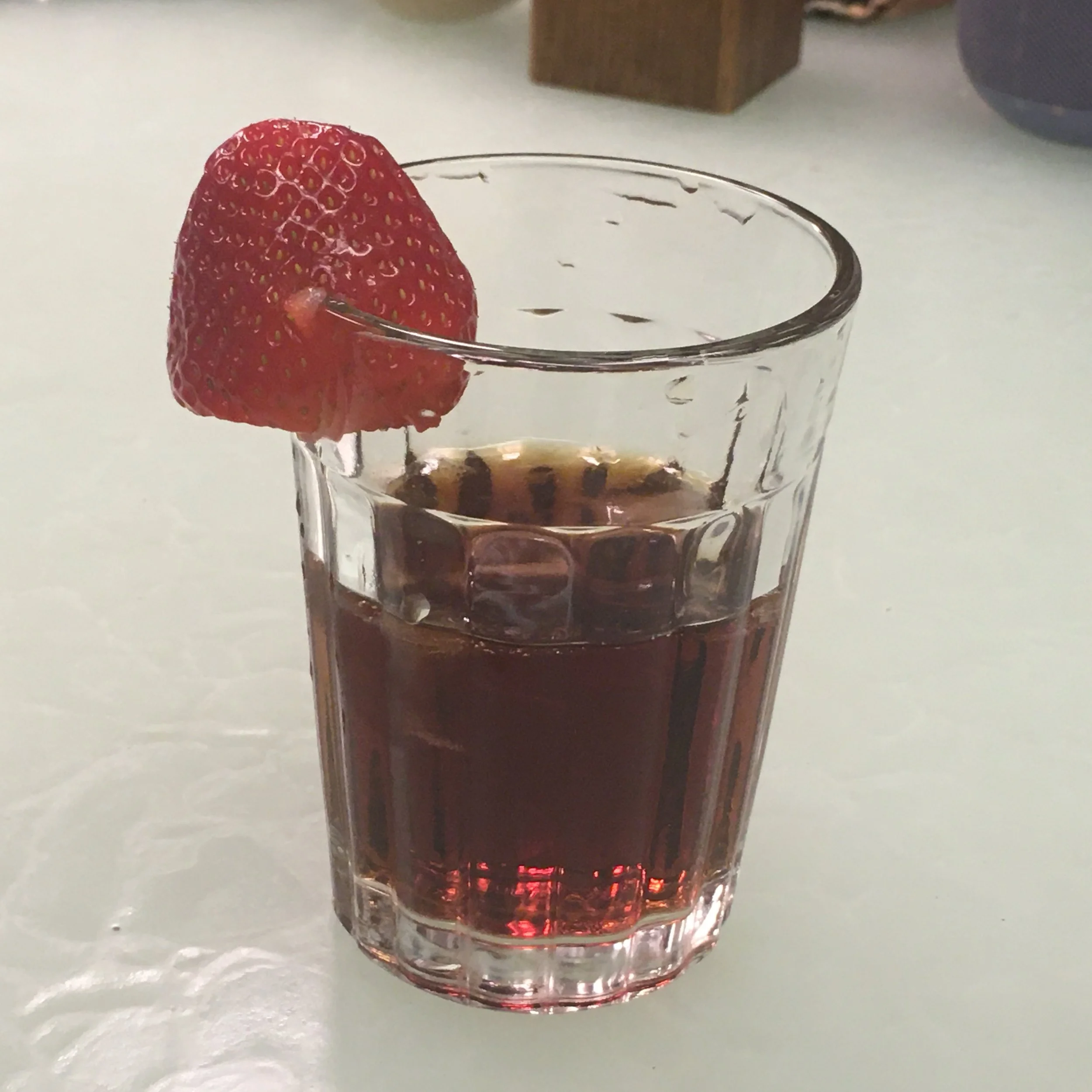 Obviously, I probably should have taken advantage of the wide world of pirate-related cocktail name possibilities for this cocktail, but because my snark towards Tom Brady knows no bounds, I couldn’t resist calling it the Central Florida Retirement Community. After entirely too many Patriots cocktails over the years, I was less than enthused about having to make this one, but fortunately had no shortage of inspiration from which to draw. It could have been either red or black, and there are loads of good bitter herbal liquors in both colors: Aperol or Campari for red, various amaros or even Jägermeister for black. Rum was another easy option because, you know, they're pirates and stuff. (Though I ended up not using any of them, there is also a wide variety of liquors with "Old" in their brand names: Old Eagle (vodka), Old Overholt (rye), and perhaps most delightfully for these purposes, Old Grand Dad (bourbon.) And I confess that I also considered using some stereotypical gross old-person drink, like prune juice, but at the end of the day it still needed to be a palatable cocktail.) We landed at essentially a rum and Coke with a dash of jagermeister as a bitter twist, and the optional strawberry garnish was a late-breaking addition when I somehow learned that Brady has such a strawberry aversion that he’s never even eaten one!